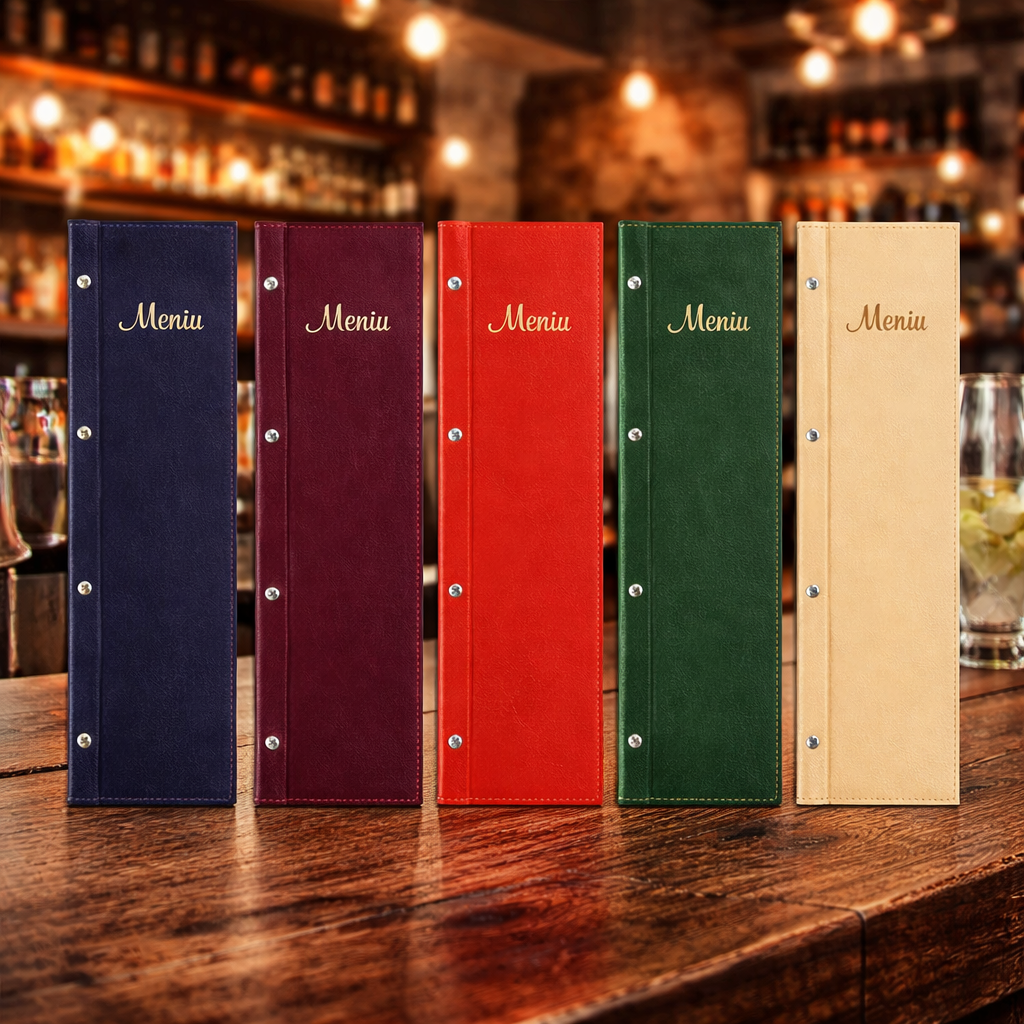 Meniu tip mapa cu coperti cartonate de 1.76 mm imbracate in piele sintetica