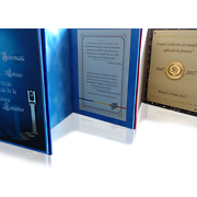 Placheta omagială bicolor plusată este un produs premium, destinat ceremoniilor oficiale, evenimentelor aniversare și momentelor de recunoaștere specială. Designul bicolor, împreună cu interiorul dublat și capitonat, oferă un aspect elegant și distinct, potrivit pentru instituții publice, organizații și mediul corporate.