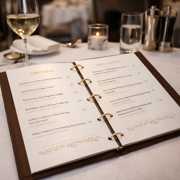 Foile de interior pentru meniu restaurant, realizate din carton de calitate superioară, sunt concepute pentru locații HoReCa premium și restaurante fine dining, inclusiv unități cu standarde Michelin. Designul elegant și finisajele profesionale asigură o prezentare rafinată a preparatelor, iar compatibilitatea cu sistemul de prindere cu inele permite actualizarea rapidă a conținutului.